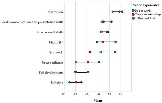 4.2. Perceptions of Five Types of Employability Skills Based on Work Experience