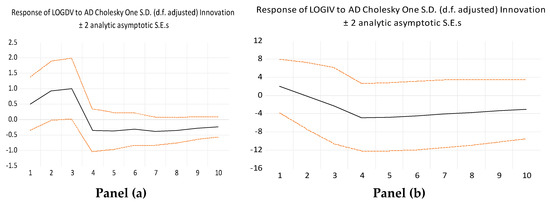 Inclusion of the error correction terms serves two purposes in the long run equilibrium i.e., it corrects any deviations from the previous periods and allows the dependent variable to respond to changes in the independent variables (Vavra and Goodwin 2005). Error correction terms in Equation (4) measure the deviation from the long-run equilibrium between domestic prices and domestic broiler production and import tariff charged. Moreover, the error correction term coefficient should be negative and significant to ensure that any deviation from the long-run equilibrium is adjusted (Dougherty 2011). Lastly, the present study used the Impulse Response model to assess the level of responsiveness of domestic broiler volume and broiler imports volume to changes in Ad Valorem tariff charged on broiler imports. The results from the Impulse Response model will reaffirm or confirm the results of ECM as they indicate the direction and level of response for variables to a standard deviation shock.