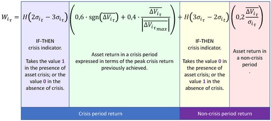 The mathematical expression of the optimal portfolio concept is the value of the calculated share of the i-th asset in the portfolio, depending on the superposition of functions, as shown in Equation (1):