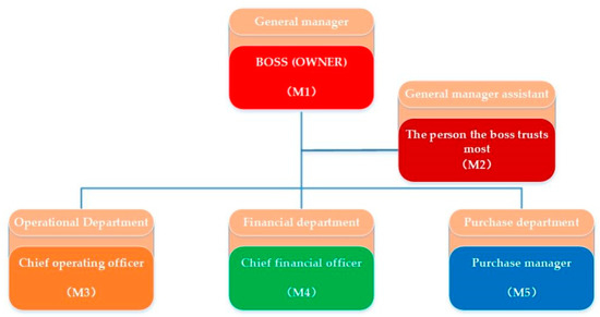 To study SMA in SMEs, it is very important to select a representative enterprise. However, this is extremely difficult because, by the end of 2019, China had 30 million small and medium-sized enterprises (excluding 70 million registered as self-employed businesses). It is impossible to choose a representative which contains all enterprise characteristics. However, we also chose a relatively representative M enterprise. M company has been across-border e-commerce in Shenzhen since 2015. The main business at this time is electronics including computers, communication, and consumer electronics. After 2017, M company changed its strategic planning and main business from electronic products to home textile. The company’s address also moved from Shenzhen to Nantong. Over the past four years, the company has achieved a surge in performance and a breakthrough in market share. In addition, it has realized short-term strategic planning and achieved first place in the city. The organizational structure of M is shown in Figure 2. M company moved from electronics to the textile industry. It is generally believed that Chinese SMEs have entered the third generation of network customization and the big data era (Wang 2021). In addition, there has been a relocation of SMEs from the most developed to less developed areas, as well as changes in their organizational structure, enterprise life cycle and stage, personnel composition, rapid development of foreign trade, and other general characteristics of SMEs (Wang and Zhang 2016; Wang 2021; Li 2015). Therefore, we choose M as the case study because it has many characteristics of ordinary foreign trade SMEs.