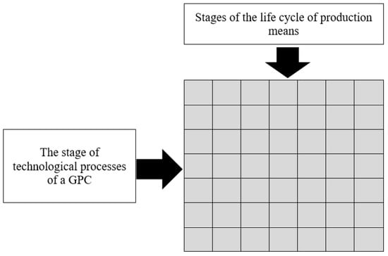 However, the provision of technological and production needs requires a deep feasibility study of all processes, conditions, and their creation (), which should become the basis for the orientation of the entire industry towards endogenous factors of scientific, technical, and socio-economic progress. In this regard, it is of particular interest to use the concept of the life cycle of production means, which reveals the entire sequence of stages of their creation as the basis for providing such means and the production of all stages of the GPCs. This approach creates new opportunities for problem-oriented and program-targeted development of the infrastructure complex ().
