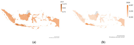 Fiscal Capacity Index 2019 vs. 2020: (a) Fiscal Capacity Index 2019; (b) Fiscal Capacity Index 2020. Source: Ministry of Finance, processed.
