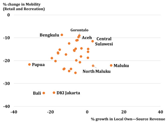 Retail and Recreational Mobility and Local Own—Source Revenue 2020. Source: Google Mobility Index and Ministry of Finance, processed.