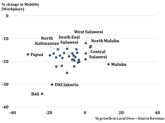 Workplace Mobility and Local Own—Source Revenue 2020. Source: Google Mobility Index and Ministry of Finance, processed.