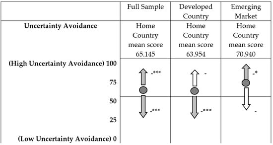 The results show that developed country’s firms are able to take advantage of distances in terms of power distance in a way that, regardless of the direction, there is a statistically significant and positive effect on performance. These findings reveal the ability of developed country firms to accommodate differences in terms of power distances regardless of its direction in a positive manner. Thus, for this dimension of DCD, the effects in the opposite directions seem to have symmetric effects on the financial performance of foreign subsidiaries from developed countries.