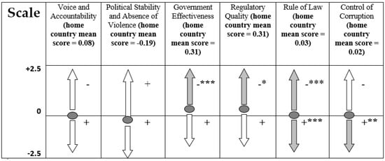 Mean score for the home countries in the sample (position in the scale). * p < 0.10; ** p < 0.05; *** p < 0.01.