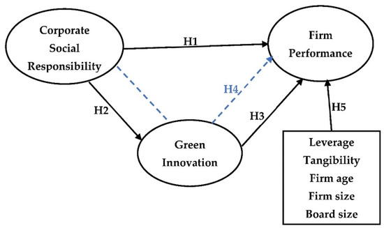 Several previous studies have found continuity between corporate social responsibility and firm performance. Consequently, adding green innovation as a mediating variable will affect operational efficiency (Gillani et al. 2020) on environmental management technology and determinants of the success of the company’s sustainability (Hansen and Schaltegger 2016). Green innovation bridges eco-design, renewable energy, green supply chain management, and eco-efficiency, along with enhancing firm performance on the availability of resources and balancing environmental protection in corporate social responsibility policies (Su et al. 2020).