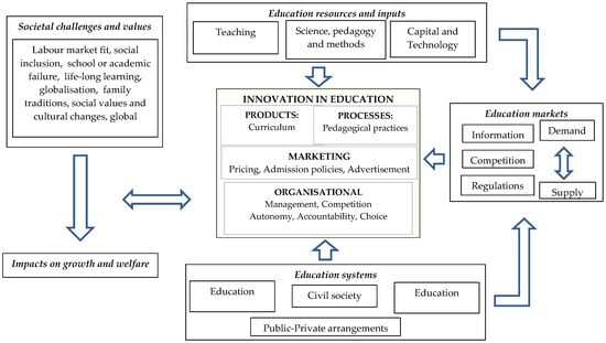 - Vincent-Lancrin, Stephan. 2017. Understanding innovation in education: Where do we stand? In Handbook of Contemporary Education Economics. Cheltenham: Edward Elgar Publishing. [Google Scholar] [CrossRef]
