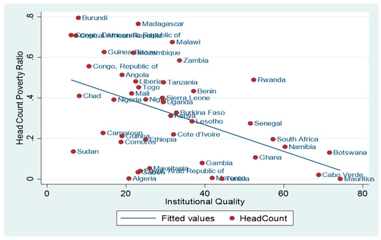 Scatter plot of institutional quality and poverty in Africa. Source: Author’s computation based on World Governance Indicator and World Bank Povcal Database (World Bank 2019).