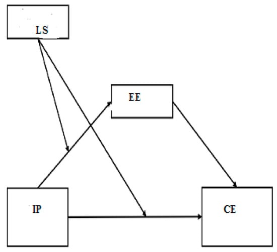 10.3. Mediating Effect of EE on the Relationship between CE and IP