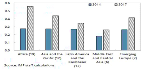 In a global comparison, the countries with the highest degree of digital financial inclusion are Africa, Asia, and the Pacific, according to the International Monetary Fund. Ghana, Kenya, and Senegal were the African nations that scored in the top quartile of the digital financial inclusion index in 2017. Digital financial inclusion in Africa is depicted in Figure 3.