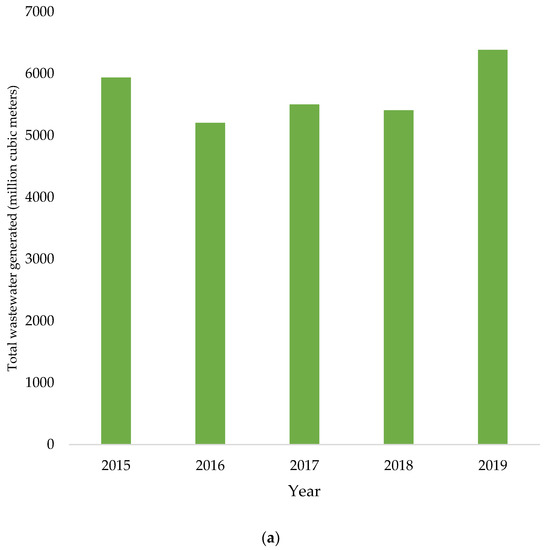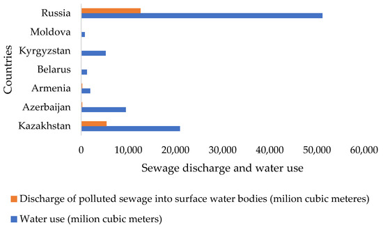 Water use is another good indicator of the growing need for more innovations in the water sector. From Figure 3, it can be observed that approximately 51,163 million cubic meters of water was used in Russia, followed by 20,955 million cubic meters in Kazakhstan; this discrepancy can be strongly linked to the number of populations within the countries, as well as the economic level that determines innovation activities. Furthermore, the consumption is strongly linked to the amount of wastewater discharged into water bodies. One of the effects of overpopulation is the strain on existing water supplies to meet the demands of an expanding population. By 2030, over half of the world’s population will be living in “water-stressed” zones, which are defined as areas where water demand exceeds supply, either owing to a shortage of supply or poor quality (compared to fifteen percent currently). Since 1990, the global population has grown by an average of eighty million people, resulting in a rise in global freshwater consumption of around 64 billion cubic meters per year, according to the United Nations Report (The United Nations World Water Development Report 2015: Water for a Sustainable World 2016) (Amprako 2019). To address these concerns, the water sector must undergo significant reforms. Innovative wastewater treatment technologies (Mkilima 2022; Mkilima et al. 2021), distributed or on-site wastewater treatment, resource recovery (Liu et al. 2021), and institutional and organizational reforms that can render improved wastewater management systems are all promising examples. According to the survey conducted by Cantor et al. (Cantor et al. 2021), it was proposed that improving relationships and communication between utility managers and regulators, as well as additional funding support for increased capacity of both utilities and regulators, would be more effective ways to encourage innovation in the municipal wastewater sector (Cantor et al. 2021). As part of the efforts in the field, The World Bank has developed Utility of the Future, a program designed to ignite, materialize, and maintain transformation efforts in water supply and sanitation services (The World Bank 2022).