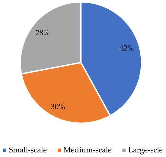 After observing the dramatic fall in terms of patented water innovations, especially in 2020, with only four patented water innovations, we decided to formulate a semi-structured questionnaire to investigate the potential influence of the COVID-19 situation in disrupting the innovation activities in the country (Appendix A); the summary of the firms’ distribution in the survey is provided in Figure 7. This is because the COVID-19 pandemic has significantly impacted the world economy, which in turn has resulted in unprecedented disruption to personalities, families, trades, as well as governmental and non-governmental, profit and non-profit organizations. Governments all over the world have been put under pressure when trying to respond to the situation while balancing the health and economic priorities of their citizens. It is only a matter of fact that the catastrophic situation has badly hit even organizations that previously had the strong capability to withstand serious disruptions in terms of investments and devising outstanding innovative solutions (KPMG Digital Delta 2020). The phenomenon makes understanding the trend of water innovation activities even more important.