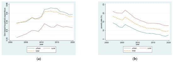 Gini-based household expenditure (a) and poverty rate across the year (b).