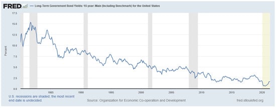 Ten-year US Government Bond Yields 1980–2021. Source: FRED.