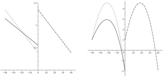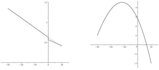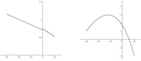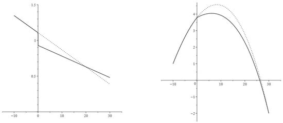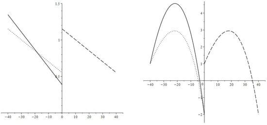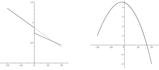 The consumption rate and the loan value are given in Figure A1. The comparison shows that the obtained values and for the utility functions and are close. At the same time gives the linear consumption rate that might be preferable for visualization.