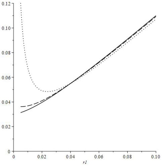 The discount rate is calibrated according to the condition (26) for . We obtain