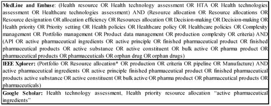 - Frutos Pérez-Surio, Alberto, Mercedes Gimeno-Gracia, Ma Aránzazu Alcácera López, Ma Asunción Sagredo Samanes, Ma Del Puerto Pardo Jario, and Ma Del Tránsito Salvador Gómez. 2019. Systematic Review for the Development of a Pharmaceutical and Medical Products Prioritization Framework. Journal of Pharmaceutical Policy and Practice 12: 21. [Google Scholar] [CrossRef]