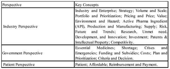 Initial coding categories representing ‘meaning units’ (themes) were then created. The themes (industry perspective; government perspective; patient perspective), were created to represent the views of the main PSC with influence on the production, consumption, or reimbursement decisions of the PNPSC, as well as the choice of analytical tools (decision models) used to analyze PSC data. Subthemes were added as they emerged during the selection procedure.
