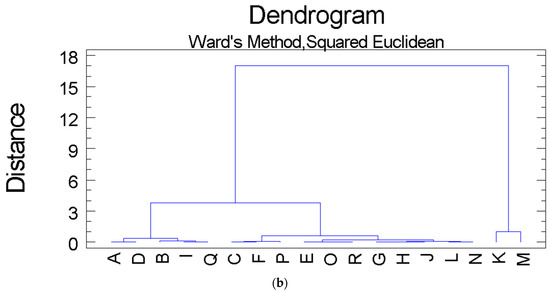 Dendogram of the coefficient of variation of the tax to GVA ratio by sectors in 2012–2020 in Ukraine (a) over 9 years; (b) over 5 years.