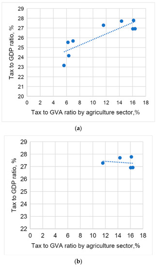 - The tax to gross value added (GVA) by sector ratio (Formula (7))Tax to GVA ratio = TRsector/GDPsectorTR sector—tax revenues by sector, GVAsector—gross value added by sector.