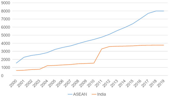 Total number of coded NTMs imposed by India and ASEAN. Source: UNCTAD TRAINS (2020).