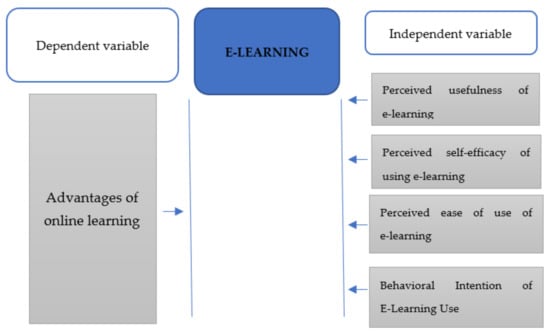 The advantages of online learning are determined through quality factors such as the perceived usefulness of e-learning, self-efficacy, perceived ease, and behavioral intention of using e-learning.