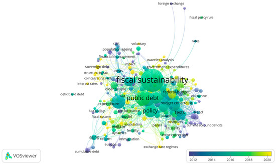 Analyzing the interrelationships between keywords and research trends in publications retrieved from Scopus and WoS databases concerning fiscal sustainability. Source: elaborated by the authors using VOSviewer and Bibliometrix tools.