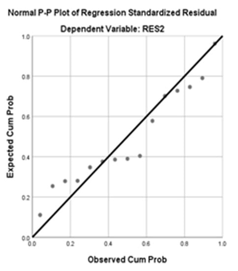 In addition, the normality test can also be known using the normal p-plot graph by looking at the distribution of the points on the plot graph. The residual will be normally distributed if the distribution of the points is close to or along the diagonal line. Furthermore, the normal plot graph can be observed in Figure 1.