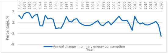 Global annual change in primary energy consumption. Source: Our World In Data.