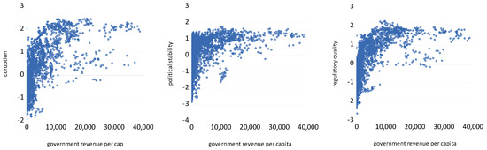 Figure 2 shows the scatter plots of the relationship between government revenue per capita and the governance indicators.