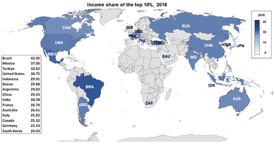 - OWID. 2023. Top Income Shares. Our World in Data. Available online: https://ourworldindata.org/income-inequality#within-country-inequality-around-the-world (accessed on 20 January 2023).