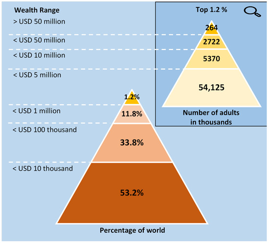 The wealth pyramid in 2021. Source: Figure produced by the authors modifying Figures 1 and 5 by CSRI (2022).