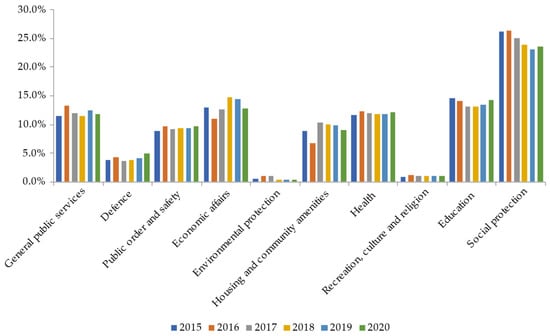 Central Government Institution Expenditure Structure by COFOG for 2015–2020. Source: Prepared by the author based on the Ministry of Finance and Economy data for year 2020.