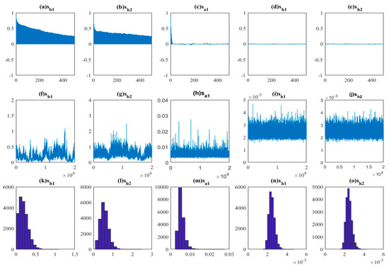 The paper follows Primiceri (2005) and Koop and Korobilis (2018) in selecting training samples to find the prior information using the ordinary least squares (OLS) algorithm. This information on coefficients is factored in the Monte Carlo Markov Chain (MCMC) in an effort to investigate the time-varying parameters. In the MCMC, the Gibbs sampling algorithm is used to fix high dimensionality. The MCMC discussed above can be expressed in phases one to five: phase 1 has β , a , h , V , phase 2 has β |   a , h , V   , y ; Ω β | β , phase 3 has a | β , h , V   , y ; Ω a | a , phase 4 has h | β ,   a , V ,   y ; Ω h | h , and phase 5 returns to phase 2.