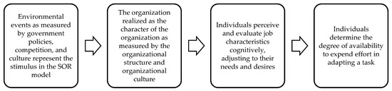 Furthermore, Wahyudin and Solikhah (2017) found that understanding the importance of good corporate governance (GCG) has already grown in Indonesian businesses. The listed businesses that took part in CGPI Awards from 2008 to 2012 always see an improvement in both number and quality. Accounting-based financial performance, such as return on assets, return on equity, and earnings per share, are impacted by the CG rating of Indonesian go-public businesses. The Indonesian stock market does not immediately respond to CG implementation rating, so it has yet to be able to accelerate the company’s growth soon. In this study, to find out how the environment in the form of regulation, competition, and societal culture influences organizations in implementing CG, the stimulus-organism-response (SOR) model is used Mehrabian and Russell (1974). The SOR paradigm is applied to three levels of interrelated variables. This model implies that human behavior can be better understood as an interactive process in which environmental events (stimuli) are perceived and processed cognitively by individuals in organizations that lead to a type of behavior (response). D. J. Campbell (1985) confirms that the SOR model can be used to explain individual behavior towards their work in organizations. Figure 1 gives a framework chart for using the SOR model (Mehrabian and Russell 1974) in this research.