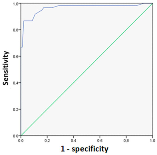 The plots show that the curve deviates from the diagonal line, which indicates good discriminative power of models. An indicator of this power is the area under the ROC curve, which is 0.5 for a model with zero predictive power and 1 for a model with the highest predictive power. The model resulted in a value equal to 0.965, which allows rejecting the null hypothesis that the area under the ROC curve does not differ from 0.5 and that the model has low predictive power and accepting an alternative hypothesis, according to which the model well clarifies the variation of the dependent variable and has good predictive power.
