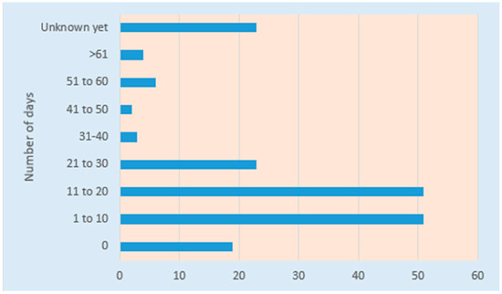 The main part of the questionnaire gave important insights into how the tourists’ consumption behavior was before the energy crisis outbreak and how it has been adapted after the crisis. The mean length of stay at the destination was calculated to be 17 days. In a more detailed presentation, 28% of respondents stated they had a stay length of 1–10 days, 28% of 11–20 days, 13% of 21–30 days, 13% answered “don’t know” and 10% answered zero days. This allocation is shown in Figure 3. The answers for 2023 are not significantly different from the previous years and this is the reason we do not present them in separate figures.