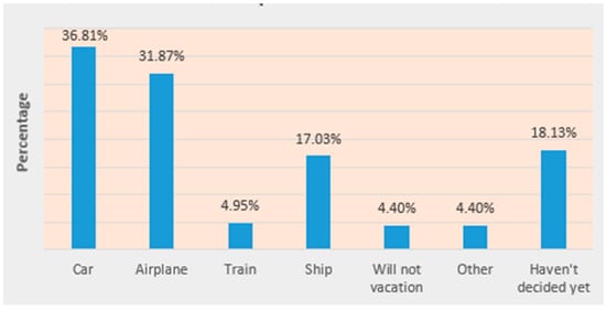 The distribution of stated preference for holiday transportation in 2023.