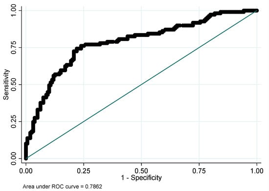Additionally, the regression diagnostic plot (ROC) shows the ability to classify the data correctly and is evaluated through the area under the curve, with a value of 1 being the perfect prediction and a value of 0.50 being the minimum acceptable value to classify women workers as workers. In the case of the regression, the area under the curve is 0.7862, which means that the model is able to adequately predict labour market insertion (Figure 3).