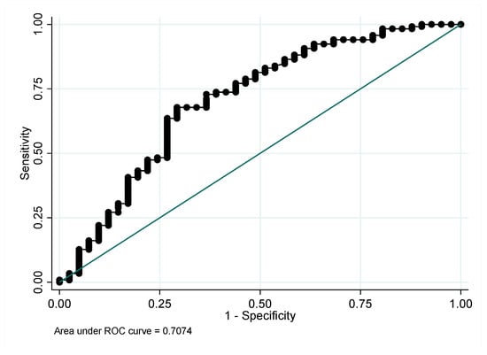 With respect to the diagnostic logistic regression plot (ROC), the area under the curve does indeed exceed the minimum allowed of 0.50, standing at 0.7074, so that the model adequately predicts the probability of willingness to work (Figure 5).