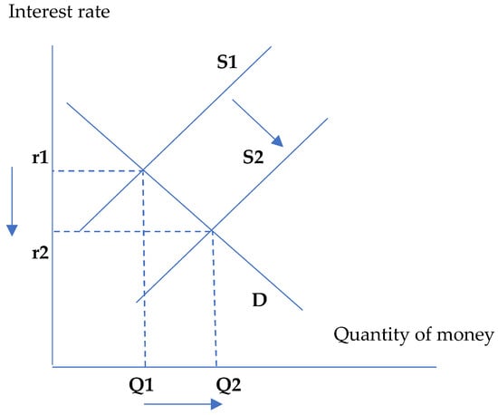 Monetary policy is usually implemented by the central bank, usually with either contractionary monetary policy or expansionary monetary policy. When the central bank maintains an expansionary monetary policy, meaning that market interest rates fall, international capital flows tend to pour into the host country. However, if the central bank maintains a contractionary monetary policy, it will lead to an increase in domestic interest rates; with a large difference between domestic and foreign interest rates, international capital flows will increase and promote domestic investment. In this way, monetary policy has an influence on decisions to expand or narrow international investment flows. Figure 1 shows that when the money supply increases, interest rates decrease, stimulating investment, and conversely, when the money supply decreases, interest rates increase and negatively affect investment. Expansionary or contractionary monetary policy can reduce or increase interest rates, meaning that there is a relationship between monetary policy and interest rates.
