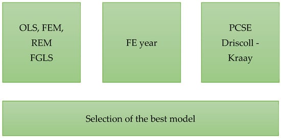 Because the selected countries are located in Southeast Asia, the economic and political activities of the countries are closely linked with each other. However, each country has different characteristics, which change over time due to cultural factors and geographical location. These features are not observed in the model, and the regression may not fully reflect these unobserved characteristics, causing bias in the estimated model. Therefore, this study uses fixed-effects year (FE year) regression to assess the time invariance and the unique characteristics of each country. The advantages of FE year regression are that it is possible to evaluate changes in different factors while the time factor does not change (thus, it can be said that the time factor is fixed). In total, the research results are drawn from combinations of the discussed regression methods. This is also the basis for performing robustness checks, which help us assess the reliability of the results of this study.
