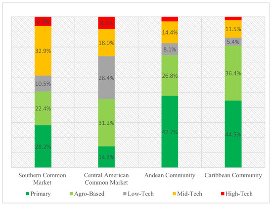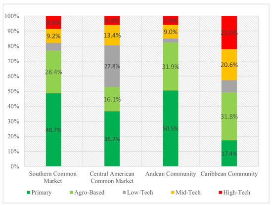 Thus, as noted, exports to markets outside Latin America, in general, are quite concentrated and low-tech. On the other hand, the pattern of exports to intraregional markets is more diversified, with a higher share of manufactured goods. Figure 1 and Figure 2 show this pattern is also repeated in some cases where there are integration schemes.