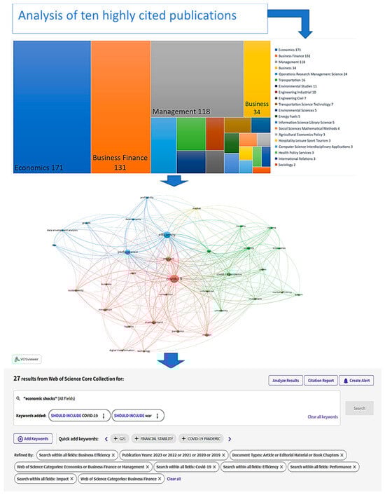 The first step of the literature review consists of an analysis of the 10 most highly cited publications in the field. Although the search included a wide range of economic crises involving the COVID-19 global pandemic and the Russia–Ukraine war, the studies analyzed were nonetheless concentrated on the topic of the COVID-19 economic crisis. This may be because the initiation of the Russia–Ukraine war was so recent (24 February 2022), and it takes time to move through the research, writing, and publication process.