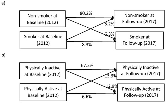 (a,b) Health behavior transition (maintenance and change) patterns.