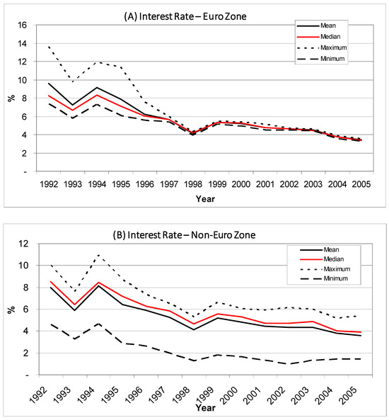 (A) Interest Rate—Euro Zone; (B) Interest Rate—Non-Euro Zone.