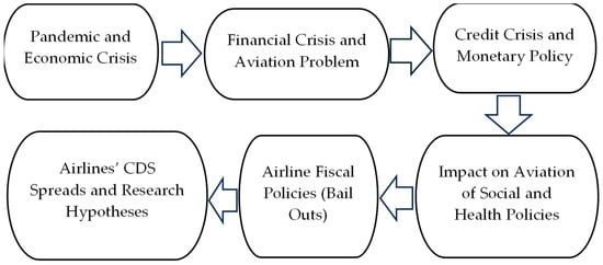 On 11 March 2020, the World Health Organization (WHO) issued a statement confirming that the COVID-19 outbreak had become a pandemic. The SARS-CoV-2 virus was rapidly perceived as highly contagious and easily transmissible. Extreme measures of social containment were taken worldwide. These entailed social distancing, school closing, workplace closing, cancelation of public events, restrictions on group gatherings, stay-at-home requirements, closing public transportation, restrictions on within-country mobility and on international voyages, testing policies, vaccination policies, contact tracing, facial coverings, information campaigns, protection of the elderly, etc. (). As argued by (), lockdowns, declines in consumer physical attendance, border shutdowns, social distancing, and other measures had a notorious negative economic impact on demand, productivity, and income. The pandemic quickly escalated to a major economic crisis and aviation was one of the most severely affected sectors (). Airlines faced both liquidity shortages and major difficulties in obtaining credit. The aviation crisis was such that government aid through bail outs was called for.