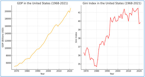 USA: GDP and Gini Index 1968–2021.