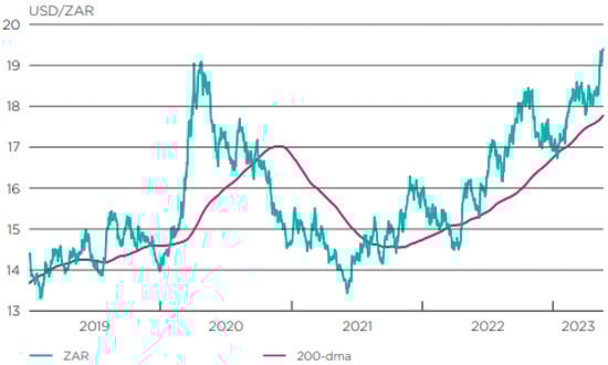 ZAR performance against USD since 2019. Source: SARB (2023).